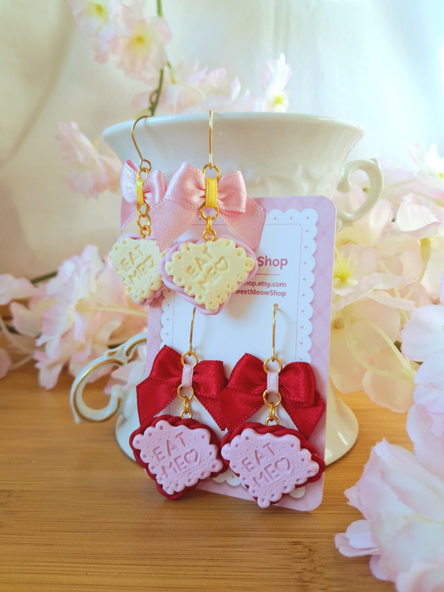 ''Eat Me''-korvakorut ovat inspiroituneet Liisa Ihmemaassa tarinasta. Näitä ei tosin voi syödä, mutta ne tekevät pukijastaan ekstra suloisen! Saatavilla teräksen sekä kultaisen värisillä metalliosilla. Saatavilla myös punaisena versiona!