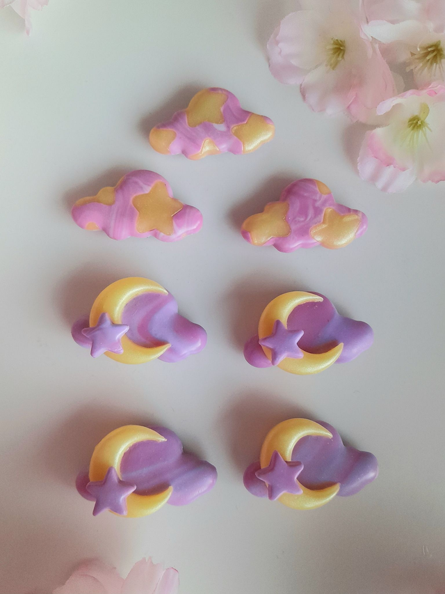 Jokaisella magneetilla on uniikki kuvionti pohjana. Saat sattumanvaraisen magneetin. Voit kuitenkin valita kahden eri version välillä: Tähtipilvi tai Kuupilvi.